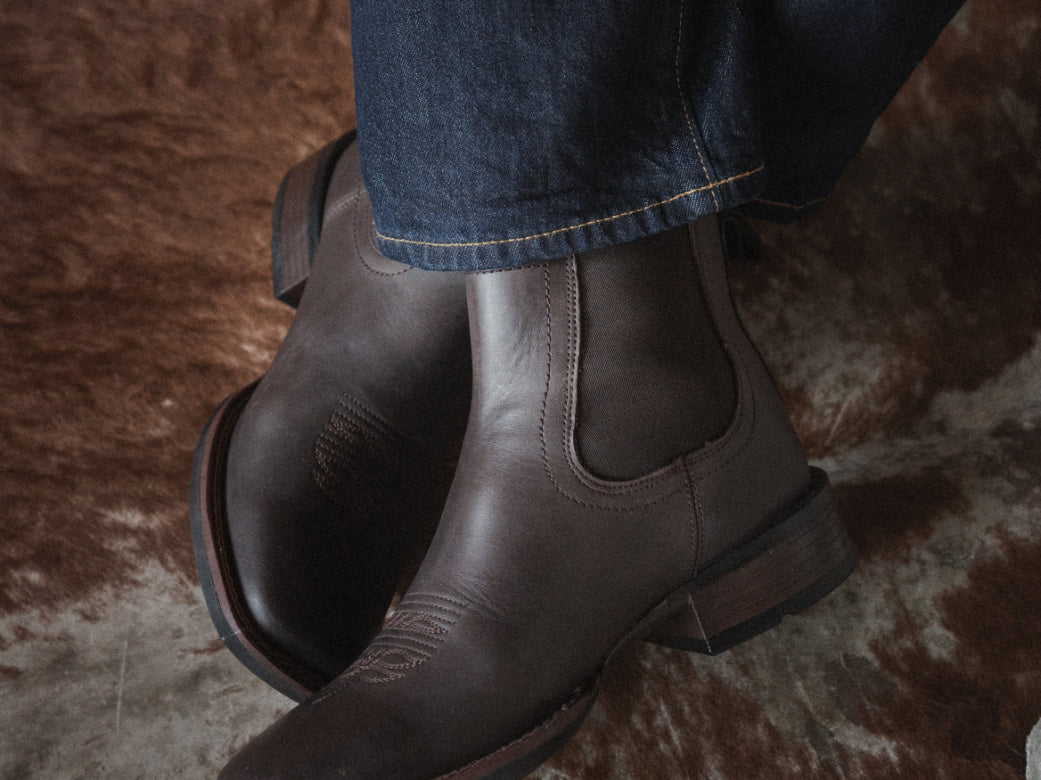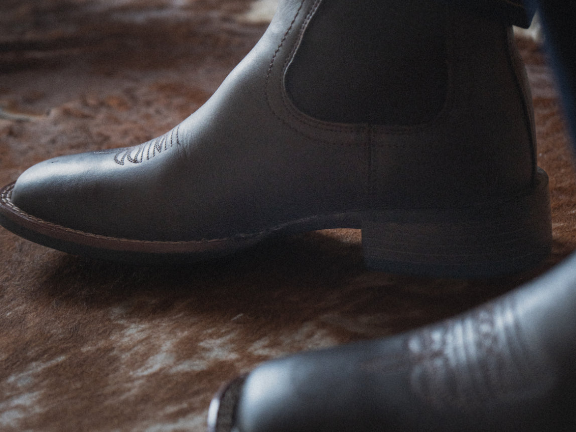 La Álamo Negro es una bota que entiende lo práctico sin olvidar lo esencial. Su diseño tipo chelsea con laterales elásticos ofrece comodidad inmediata, mientras que su silueta limpia y bordado sutil la mantienen fiel a su herencia vaquera.