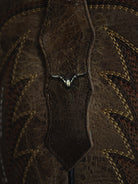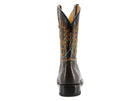La Fénix representa el espíritu de quien nunca se apaga. Confeccionada en piel genuina color chocolate oscuro, esta bota se eleva con un tubo negro decorado con bordado multicolor que evoca flamas en movimiento. Una silueta tradicional tejana con una actitud que no se rinde.