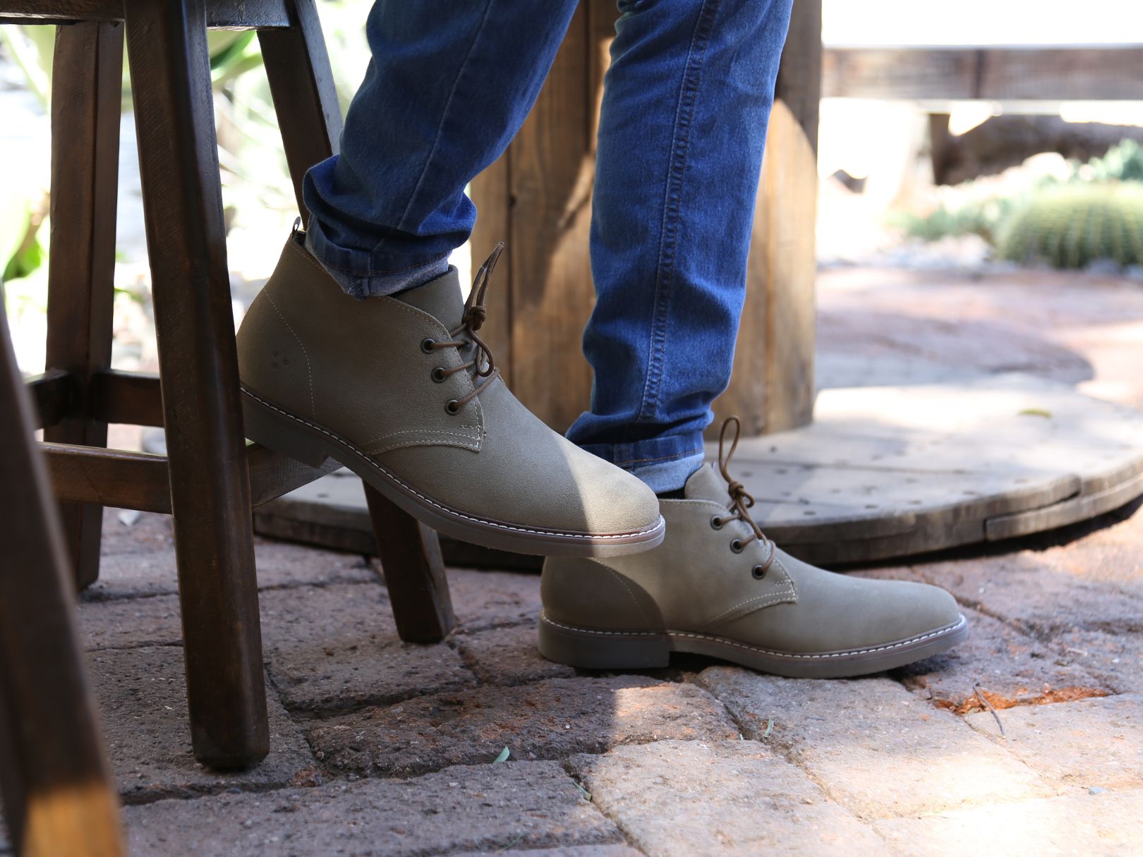 Botín Chelsea Gamuza con agujetas Mod. 35802 Enzo Para Caballero Color Beige